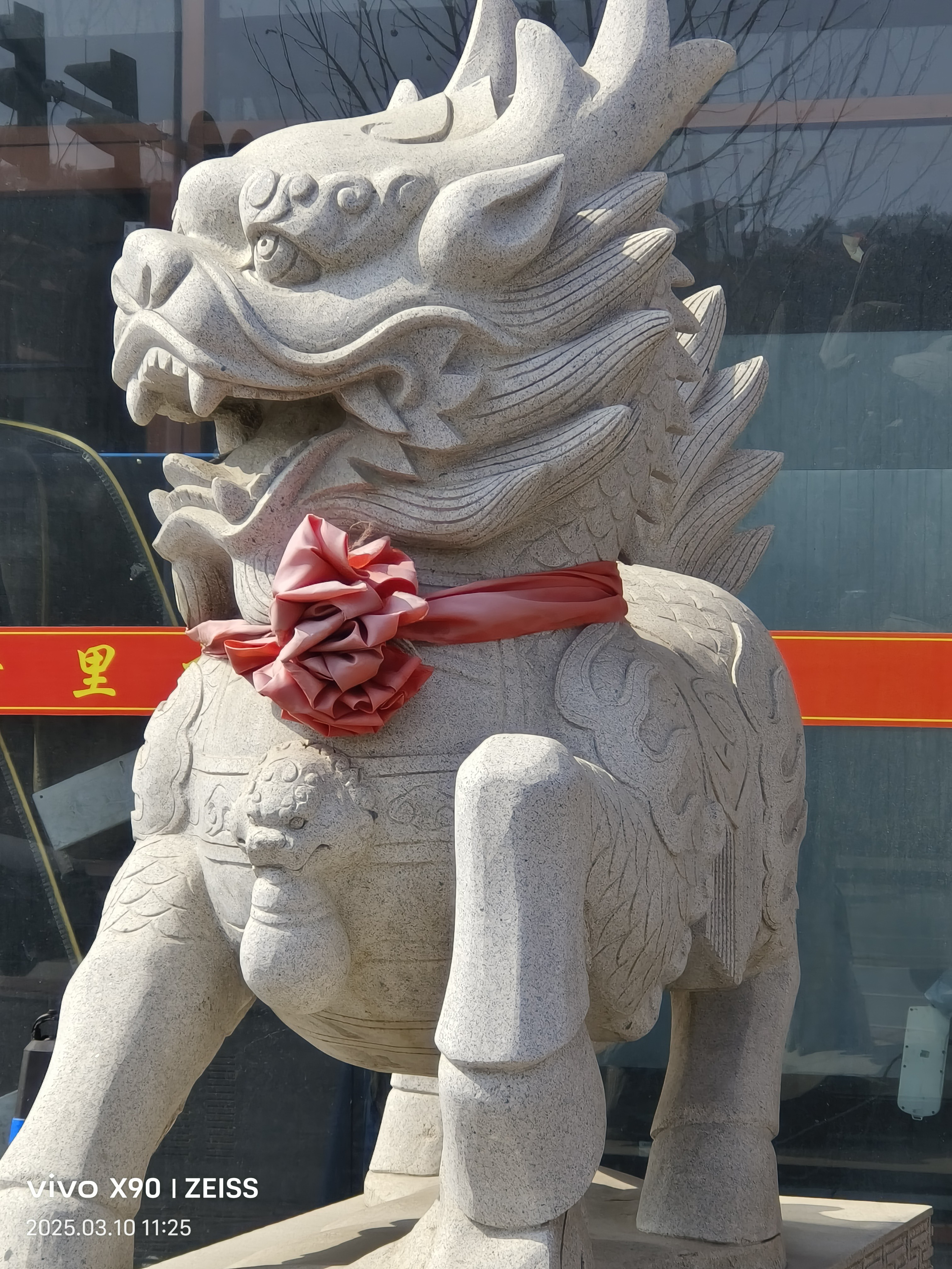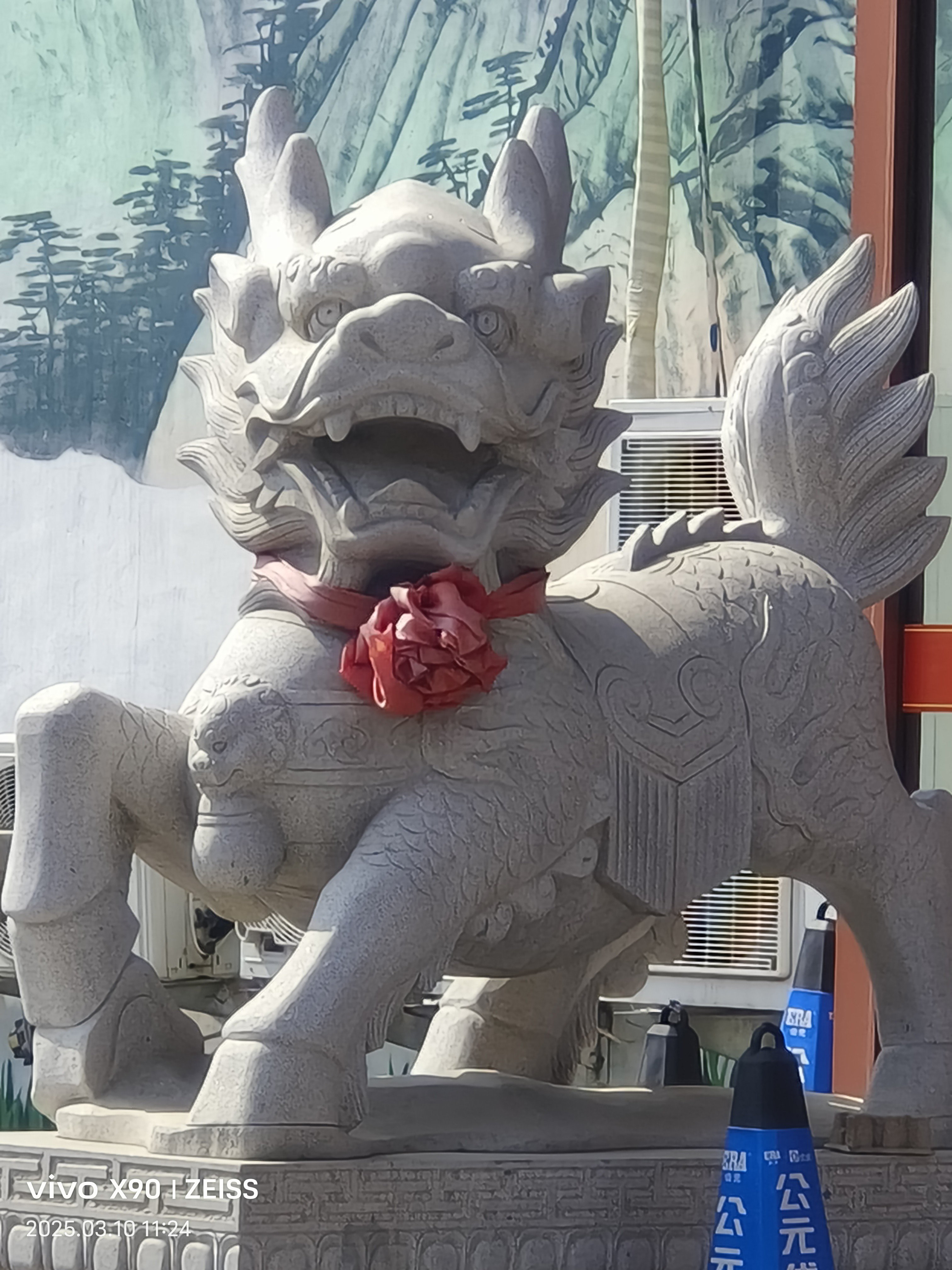 首先,两只大麒麟,毫无开光痕迹,其次应该往里再摆三度,把财气兜一下,第二,门口下水道没有进行任何处理,破财,第三,两边水池应往前放,放两边流财,或是一个水池压在下水道口,让其形成循环,方破局